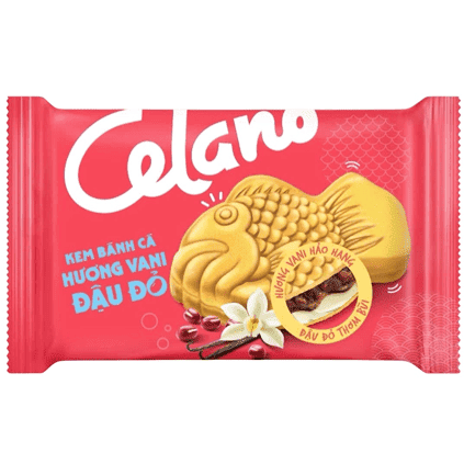 Kem bánh cá vani đậu đỏ Taiyaki Celano Sandwich được sản xuất trên dây chuyền hiện đại, công nghệ tiên tiến với những thành phần được lựa chọn kỹ. Sản phẩm không chứa đường hóa học, chất tạo ngọt, phẩm màu, an toàn cho người sử dụng.