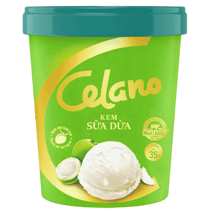 Kem hộp Celano sữa dừa được sản xuất từ nguồn nguyên liệu tươi ngon, đảm bảo chất lượng. Vị kem mát lạnh mang lại sự ngon miệng, sảng khoái cho người thưởng thức.