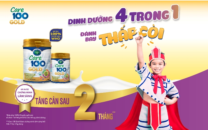 Hiểu được nỗi lo đó các chuyên gia dinh dưỡng của NutriCare đã nghiên cứu và chia sẻ một bí quyết sẽ khiến mẹ yên tâm hơn khi con biếng ăn, đó là sản phẩm sữa bột Care 100 Gold với nguyên liêu nhập khẩu từ Mỹ với nhiều ưu điểm vượt trội hiệu quả dành cho trẻ biếng ăn. Sản phẩm cải thiện tình trạng thiếu hụt dinh dưỡng, tăng cường hệ miễn dịch và hệ tiêu hóa, đồng thời giúp phát triển não bộ và thị giác. Điểm nổi bật của sữa bột Care 100 Gold là cung cấp hàm lượng Canxi, Phốt pho và Vitamin D cao giúp trẻ phát triển chiều cao bắt kịp đà tăng trưởng với các bạn cùng trang lứa.